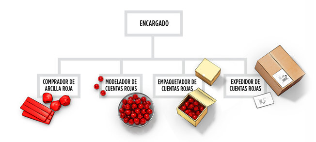 Alguien dirige las máquinas. Alguien repara las máquinas. Todo esto lo puede hacer una persona, pero tan pronto aumenta el volumen, alguien tiene que planear las acciones, separarlas en diferentes tipos y ponerlas en un organigrama.